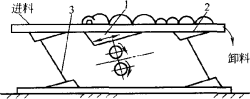 振動整列輸送機當槽體向前振動時,依靠物料與槽體間的摩擦力把運動能量傳遞給物料,使物料加速運動,此時物料的運動方向與槽體的振動方向相同。當槽體向后振動時,物料因受慣性作用,仍將繼續(xù)向前運動,槽體則從物料下面往后運動,由于運動中阻力的作用,物料越過一段槽體又落回槽體上。