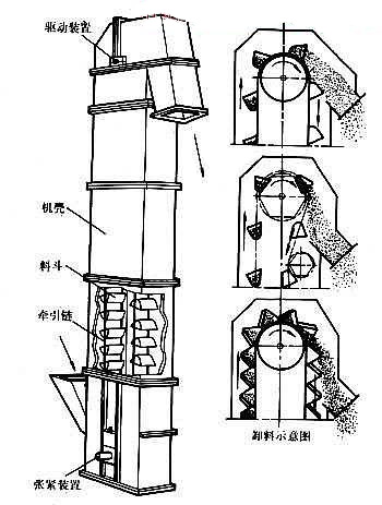 挖斗提升機是使用鏈條、皮帶、鐵鏈等帶動料斗來達到提升輸送物料的效果,主要適用于粉狀、顆粒狀及小塊物料的連續垂直提升,可廣泛應用于各種規模的飼料廠、面粉廠、米廠、油廠、淀粉廠以及糧庫、港口碼頭等的散裝物料的提升。